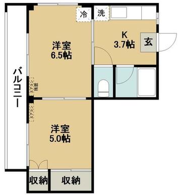 | 間取り | 2K(K3.7洋室6.5洋室5) | 主要採光面 | 南西 |